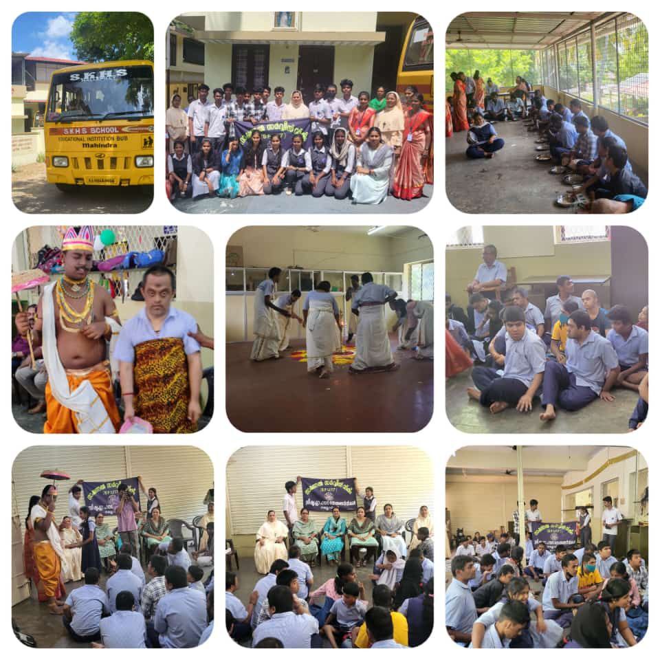 SKHSS, Nallepilly: Participated in the Onam celebrations with the children of Pratheeksha School for Special Children, Tathamangalam. Children were served the lunch they had brought and shared happiness with them by dancing and singing.